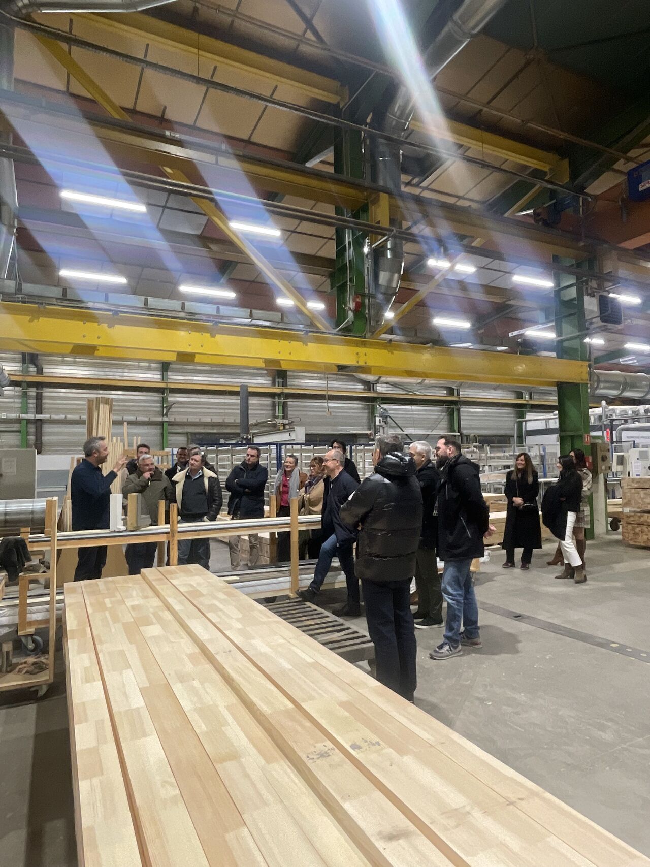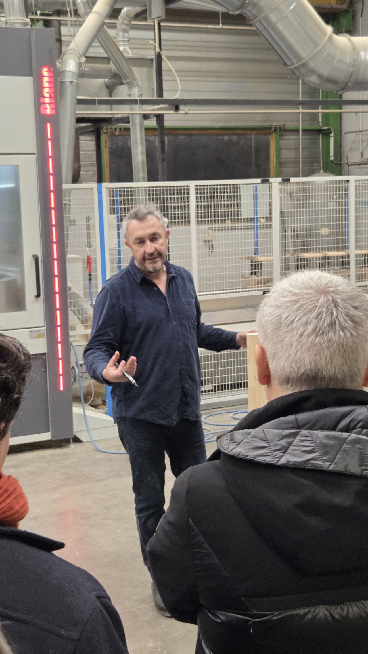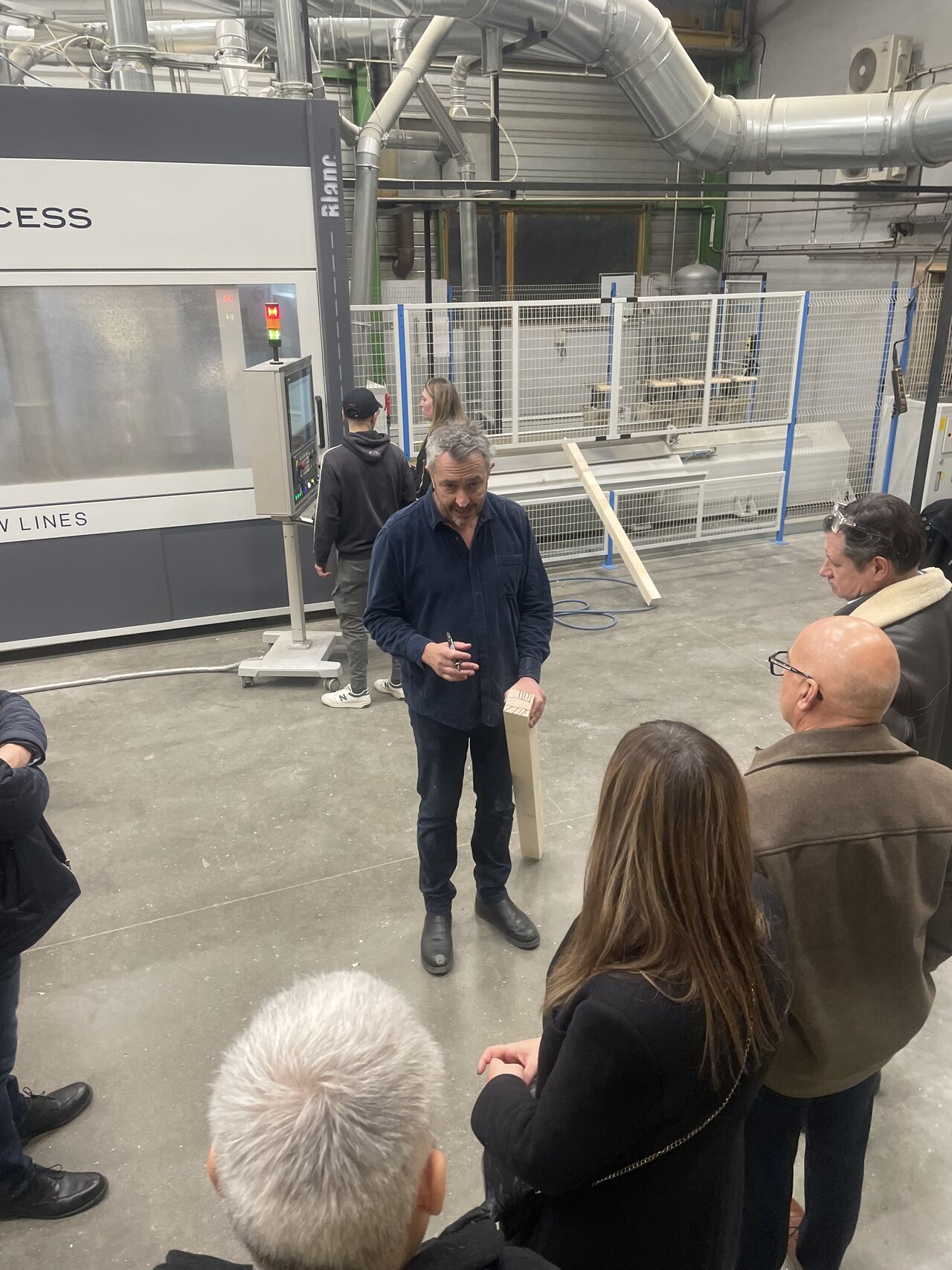 Au cours de la visite, les participants ont pu découvrir l’ensemble des étapes de fabrication, depuis le choix du bois jusqu’à l’usinage et l’assemblage des menuiseries. Cette immersion a permis de mieux comprendre les exigences techniques du sur-mesure, mais aussi les enjeux actuels liés à la performance énergétique et à la durabilité des produits.
